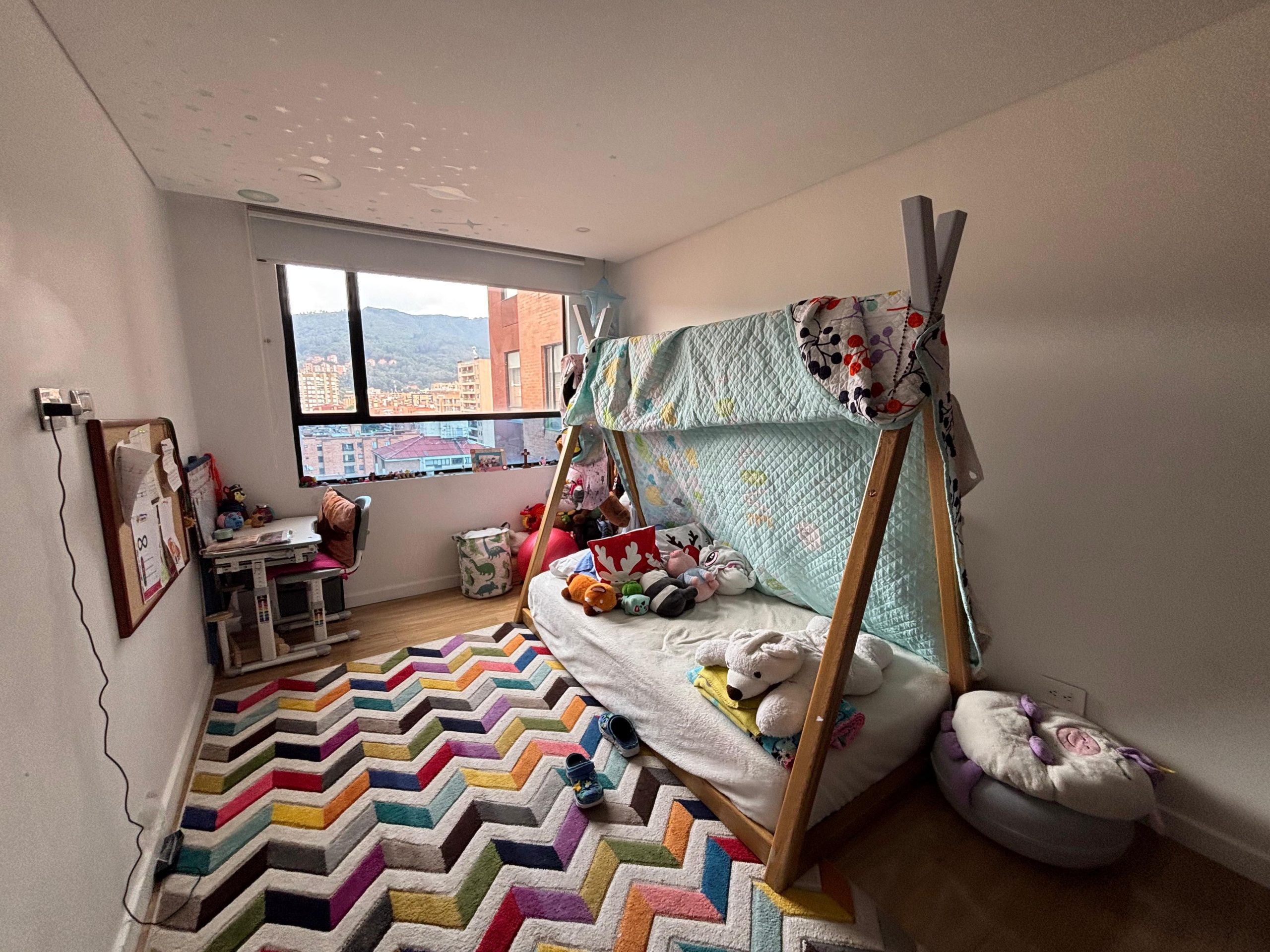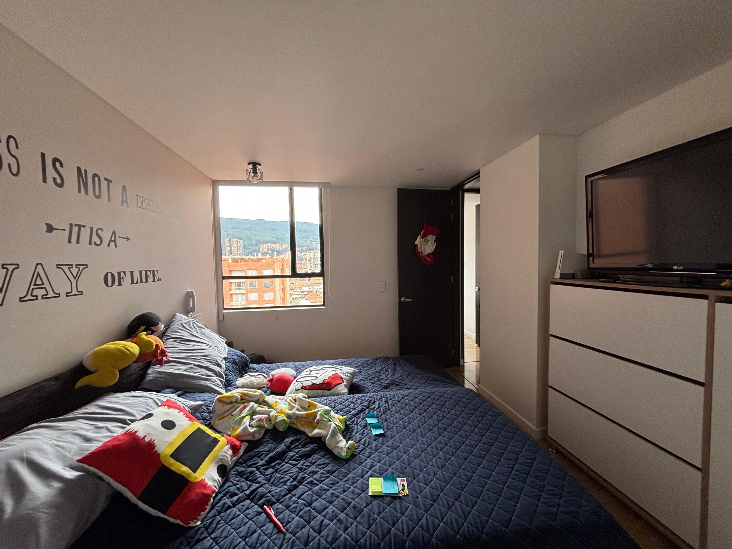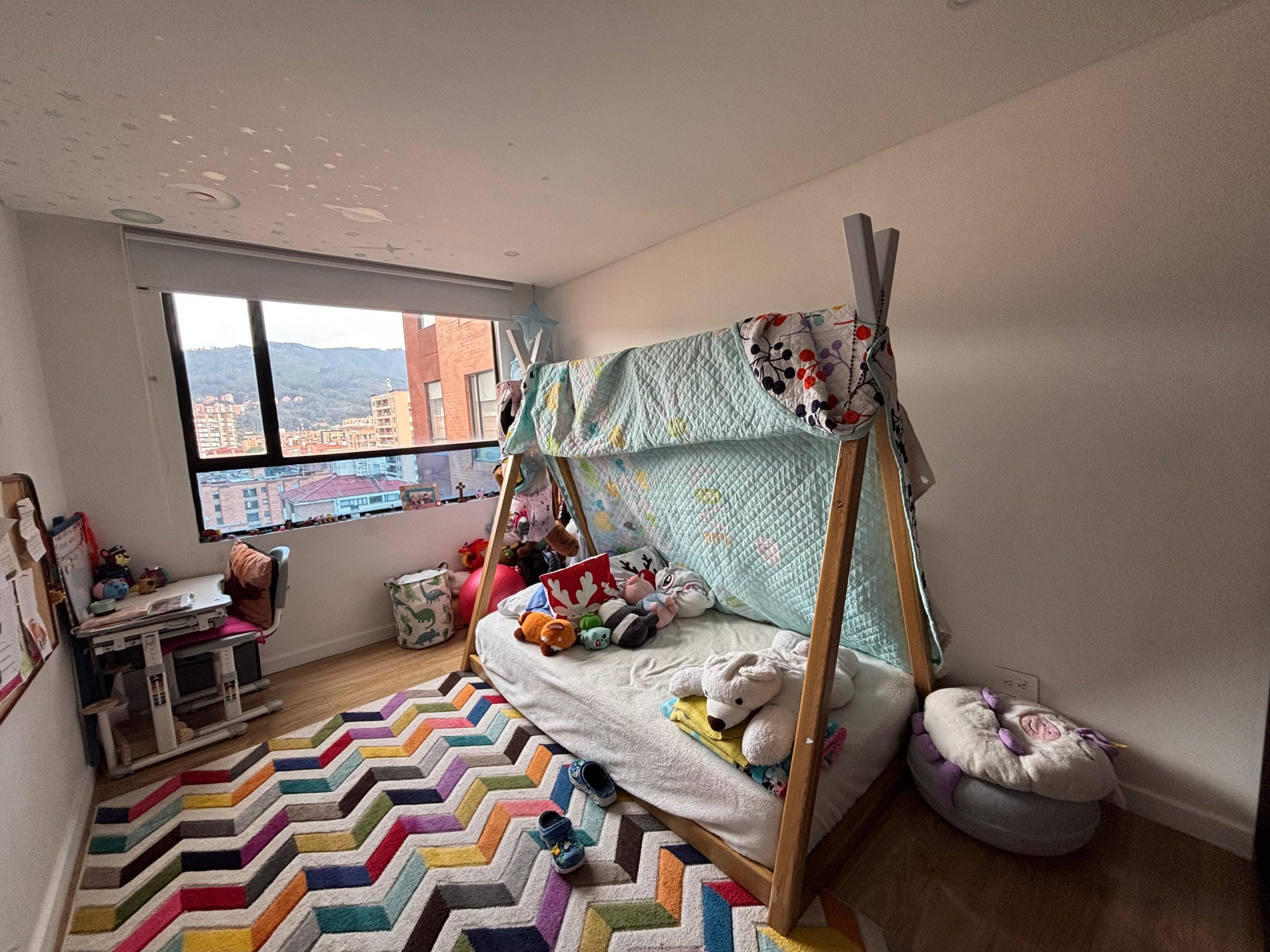 Espectacular apartamento en edificio club house, con 109 metros, con 3 habitaciones, 3 baños, sala comedor independiente con chimenea a gas, y balcon, cocina abierta, con zona de lavandería independiente, estudio o sala de tv, piso alto, dos parqueaderos cubiertos un deposito, el edificio cuenta con piscina, sauna,jacuzzi, salones comunales, bbq, terraza con parque infantil y bbq, parqueadero de visitantes, gymnasio, vigilancia 24 horas.